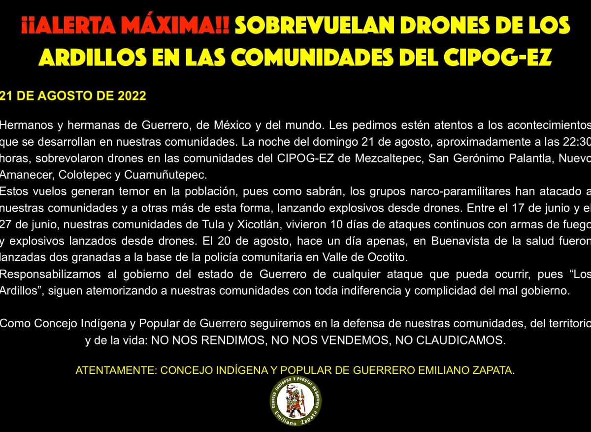 ¡¡ALERTA MÁXIMA!! sobrevuelan drones de los ardillos EN LAS COMUNIDADES DEL CIPOG-EZ