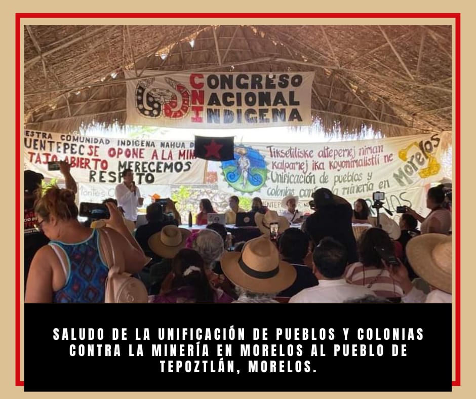 Saludo de la Unificación de Pueblos y Colonias Contra la Minería en Morelos al pueblo de Tepoztlán, Morelos.