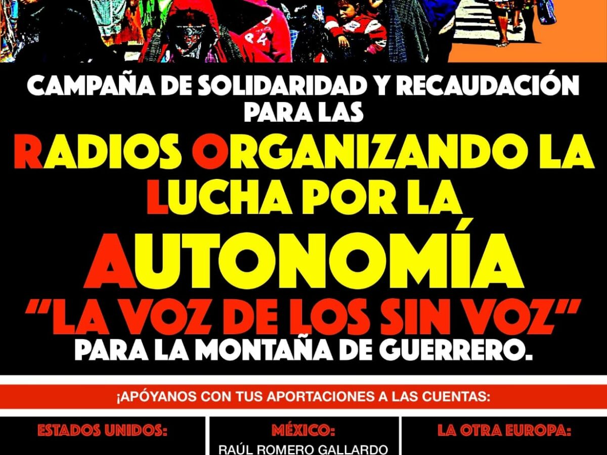 CAMPAÑA DE SOLIDARIDAD Y RECAUDACIÓN PARA LAS RADIOS ORGANIZANDO LA LUCHA POR LA AUTONOMÍA «LA VOZ DE LOS SIN VOZ» PARA LA MONTAÑA DE GUERRERO