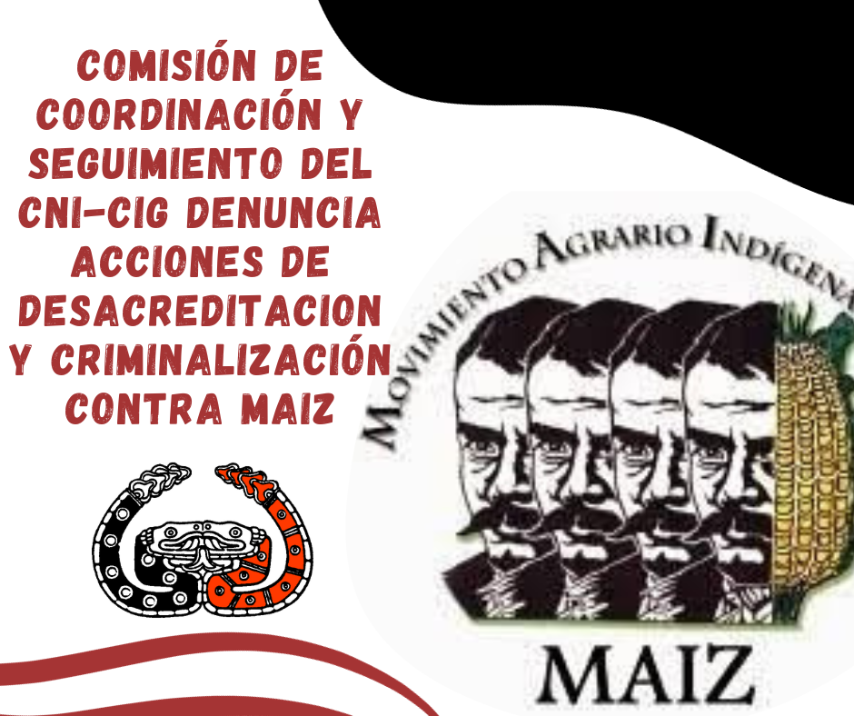 COMISIÓN DE COORDINACIÓN Y SEGUIMIENTO DEL CNI-CIG DENUNCIA ACCIONES DE DESACREDITACION Y CRIMINALIZACIÓN CONTRA MAIZ