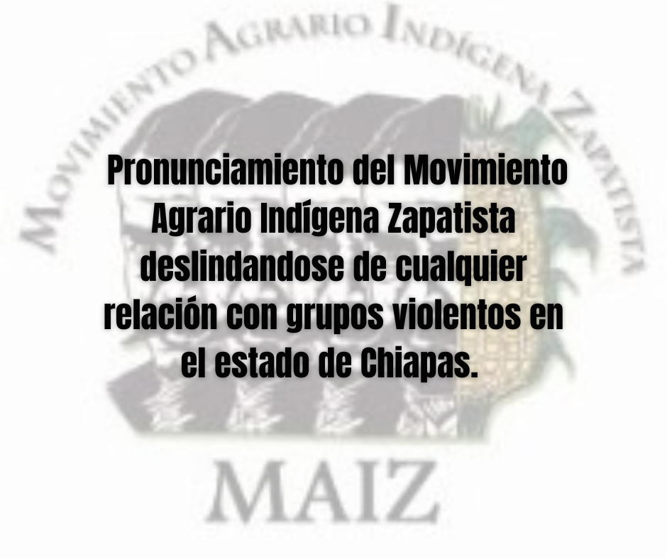 Pronunciamiento del Movimiento Agrario Indígena Zapatista deslindandose de cualquier relación con grupos violentos en el estado de Chiapas.