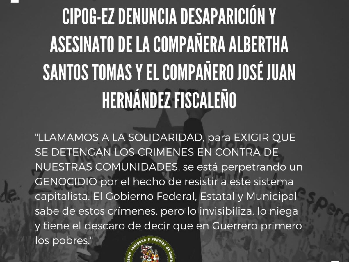 CIPOG-EZ DENUNCIA DESAPARICIÓN Y ASESINATO DE LA COMPAÑERA ALBERTHA SANTOS TOMAS Y EL COMPAÑERO JOSÉ JUAN HERNÁNDEZ FISCALEÑO