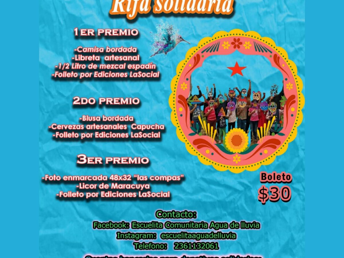 Rifa solidaria Escuelita comunitaria agua de lluvia