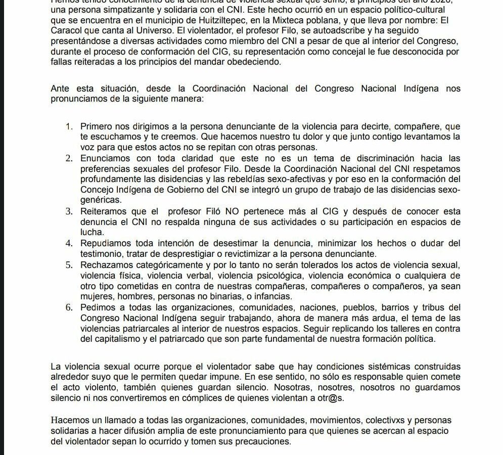 Compañeras, compañeres y compañeros, desde el corazón colectivo que somos, con gran rabia e indignación…