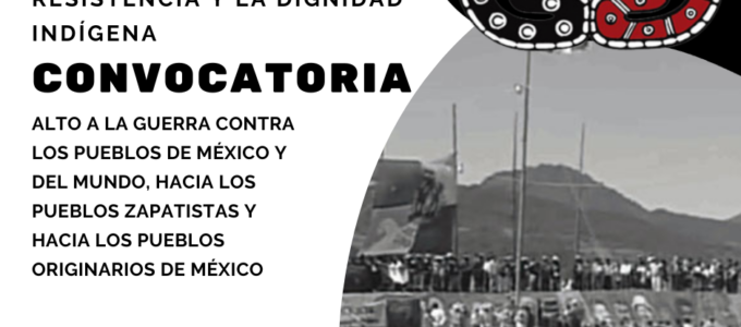 12 DE OCTUBRE, DÍA DE LA RESISTENCIA Y LA DIGNIDAD INDÍGENA CONVOCATORIA ALTO A LA GUERRA CONTRA LOS PUEBLOS DE MÉXICO Y DEL MUNDO, HACIA LOS PUEBLOS ZAPATISTAS Y HACIA LOS PUEBLOS ORIGINARIOS DE MÉXICO A los pueblos de México y del mundo, Al Espacio de Coordinación Nacional Contra la Guerra, … Sigue leyendo CONVOCATORIA ALTO A LA GUERRA CONTRA LOS PUEBLOS DE MÉXICO Y DEL MUNDO, HACIA LOS PUEBLOS ZAPATISTAS Y HACIA LOS PUEBLOS ORIGINARIOS DE MÉXICO