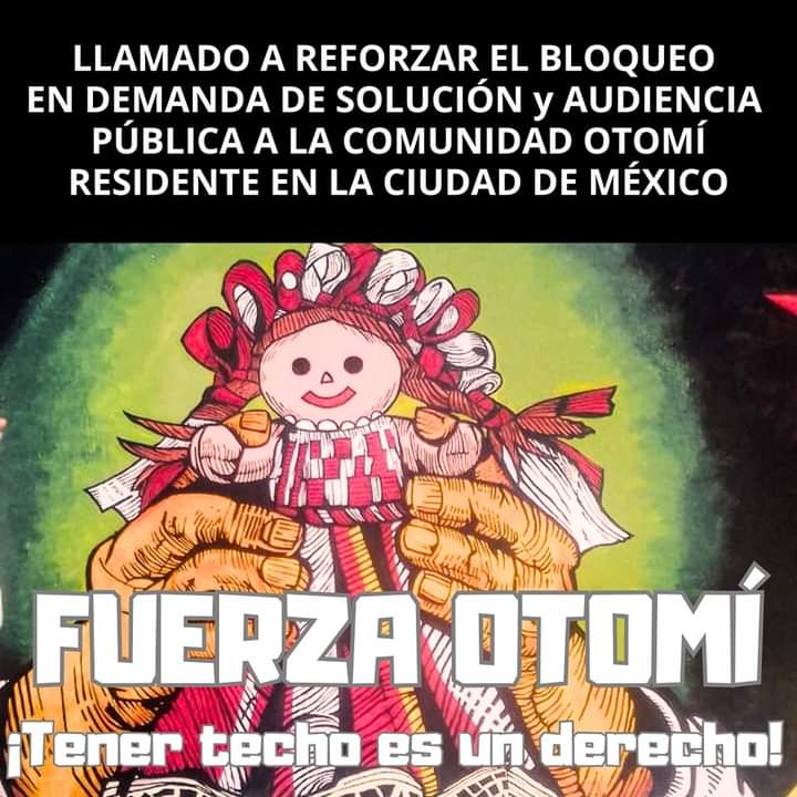Ciudad de México: Llamado a reforzar el bloqueo de la Avenida México-Coyoacán 343 en demanda de solución y audiencia pública a la comunidad otomí residente en la cdmx