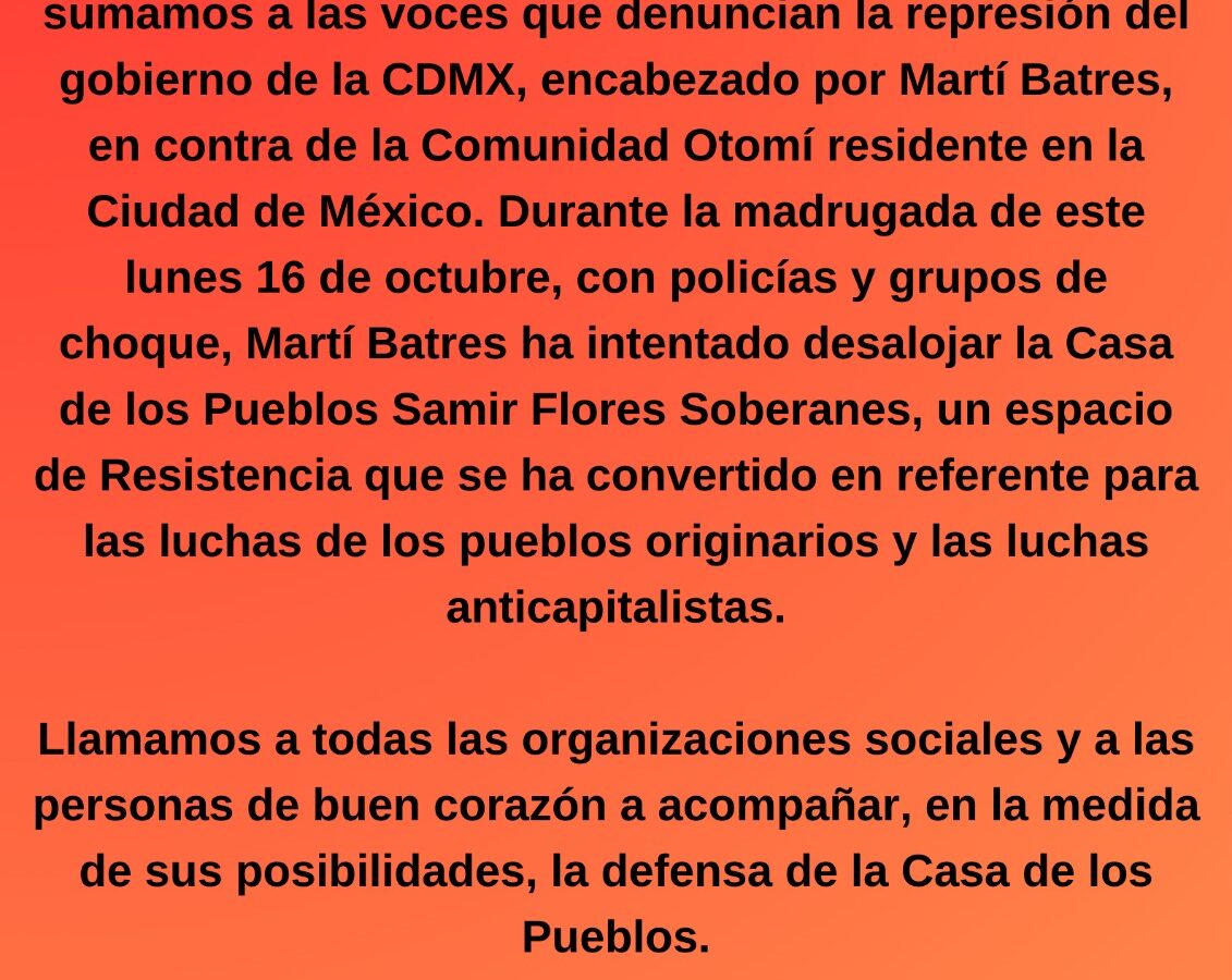 PRONUNCIAMIENTO DE COLECTIVIDADES DE OAXACA EN SOLIDARIDAD CON LA COMUNIDAD OTOMÍ RESIDENTE EN LA CIUDAD DE MÉXICO