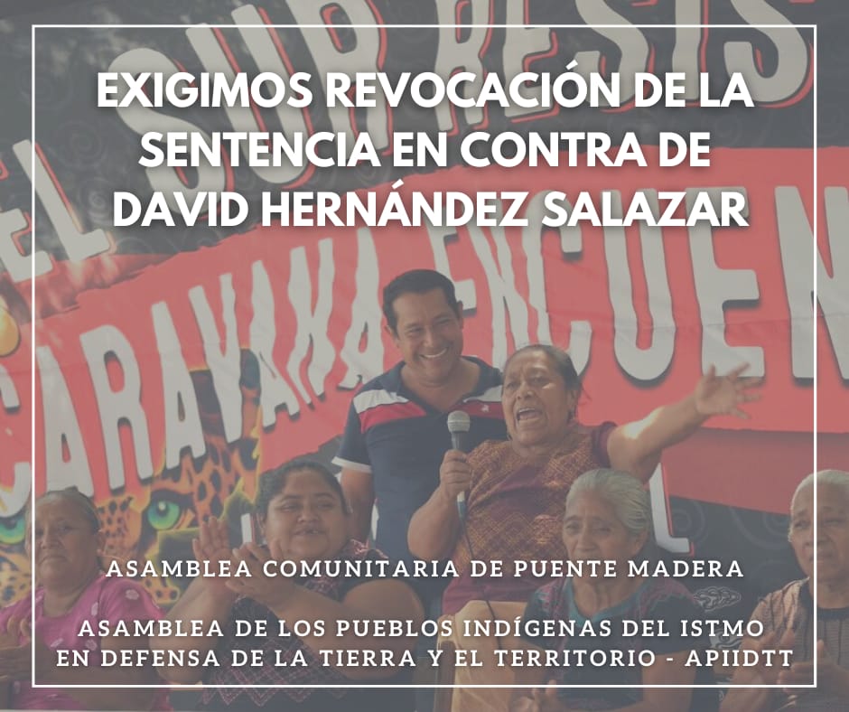 EXIGIMOS REVOCACIÓN DE LA SENTENCIA CONTRA DAVID HERNÁNDEZ SALAZAR