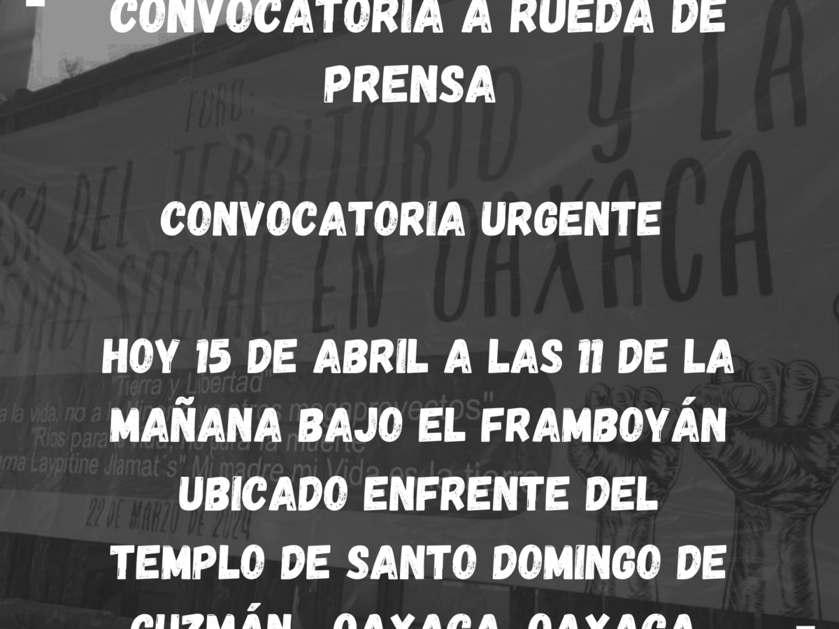 CONVOCATORIA URGENTE: RUEDA DE PRENSA EN OAXACA