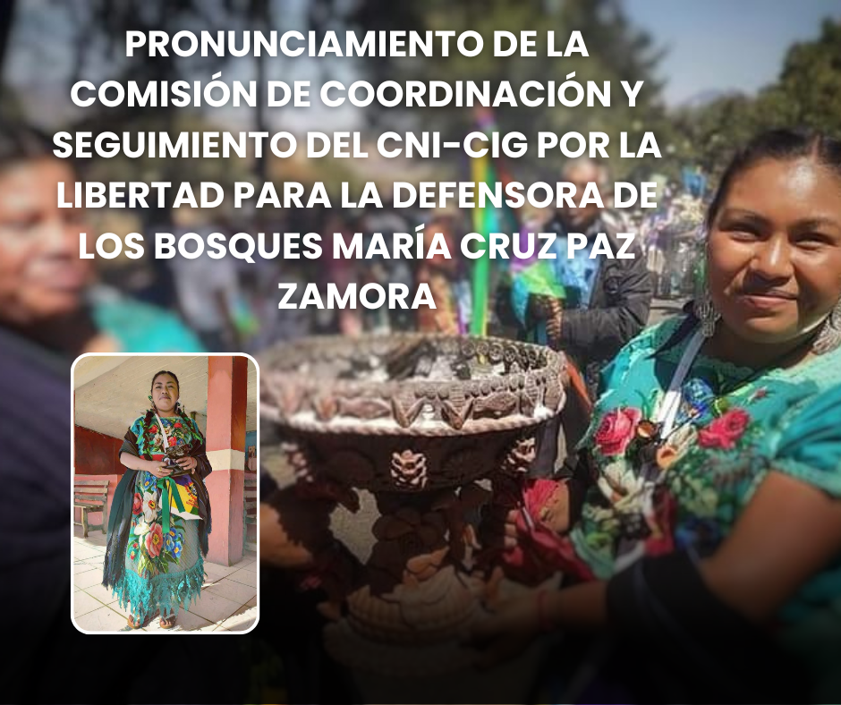 Pronunciamiento de la Comisión de Coordinación y seguimiento del CNI-CIG por la Libertad para la Defensora de los Bosques María Cruz Paz Zamora