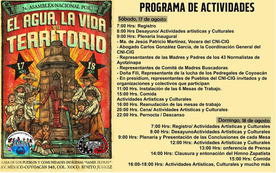 INFORMACIÓN IMPORTANTE PARA LA 5A ASAMBLEA NACIONAL POR EL AGUA, LA VIDA Y EL TERRITORIO