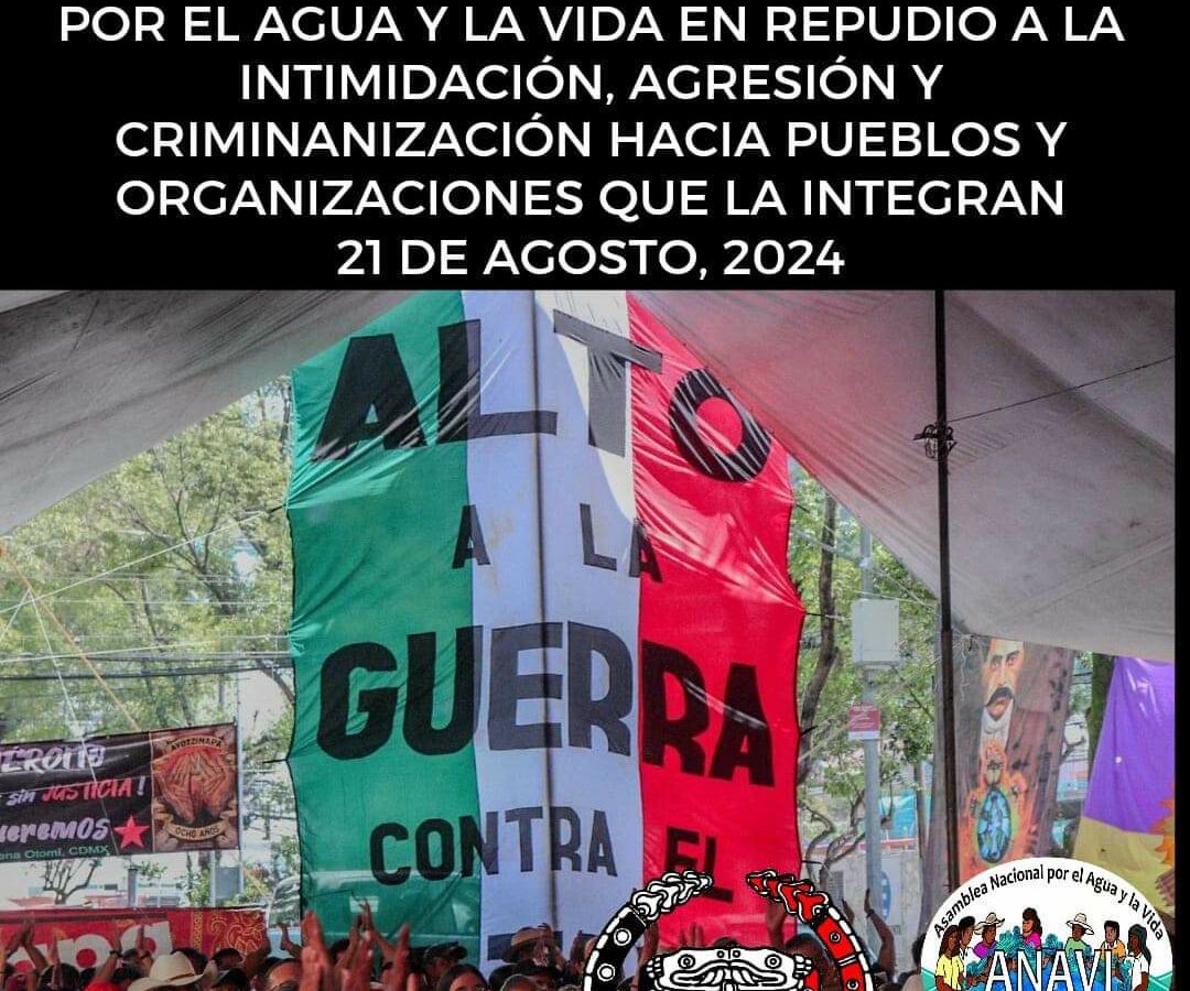 COMUNICADO DE LA ASAMBLEA NACIONAL POR EL AGUA Y LA VIDA EN REPUDIO A LA INTIMIDACIÓN, AGRESIÓN Y CRIMINALIZACIÓN A LOS PUEBLOS Y ORGANIZACIONES QUE LA INTEGRAN.