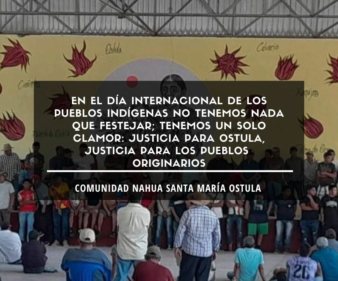 EN EL DÍA INTERNACIONAL DE LOS PUEBLOS INDÍGENAS NO TENEMOS NADA QUE FESTEJAR; TENEMOS UN SOLO CLAMOR: JUSTICIA PARA OSTULA, JUSTICIA PARA LOS PUEBLOS ORIGINARIOS