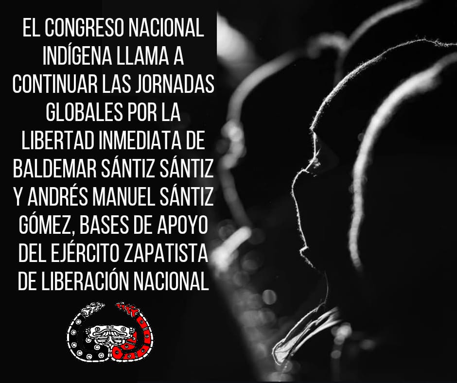 EL CONGRESO NACIONAL INDÍGENA LLAMA A CONTINUAR LAS JORNADAS GLOBALES POR LA LIBERTAD INMEDIATA DE BALDEMAR SÁNTIZ SÁNTIZ Y ANDRÉS MANUEL SÁNTIZ GÓMEZ, BASES DE APOYO DEL EJÉRCITO ZAPATISTA DE LIBERACIÓN NACIONAL