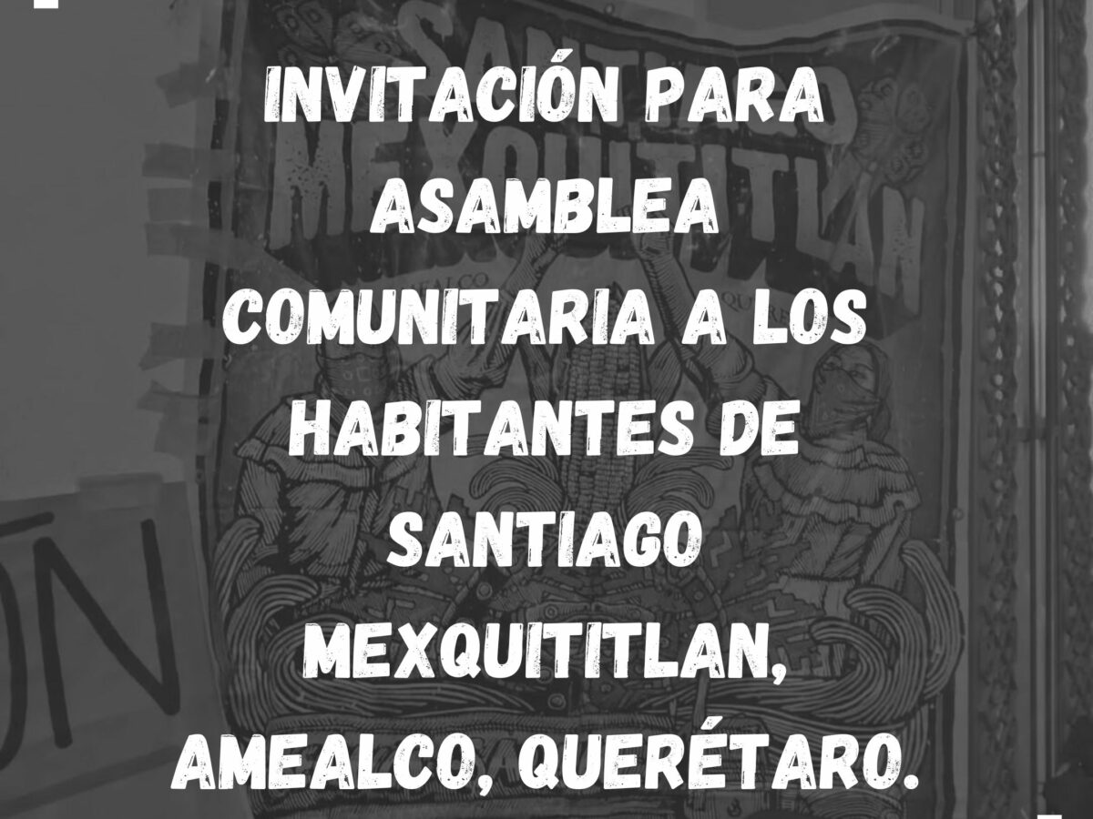 INVITACIÓN PARA ASAMBLEA COMUNITARIA A LOS HABITANTES DE SANTIAGO MEXQUITITLAN, AMEALCO, QUERÉTARO.