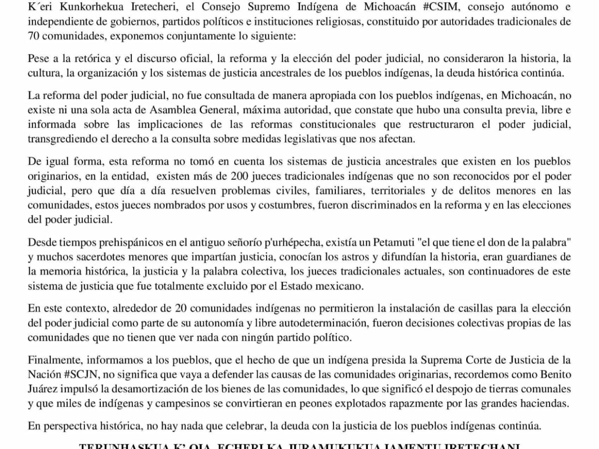 REFORMA Y ELECCIONES DEL PODER JUDICIAL: LA DEUDA HISTÓRICA CON LOS PUEBLOS INDÍGENAS CONTINÚA AL…