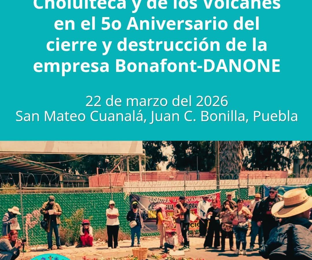 Comunicado de Pueblos Unidos de la Región Cholulteca y de los Volcanes en el 5° aniversario del cierre y destrucción de la empresa Bonafont-DANONE