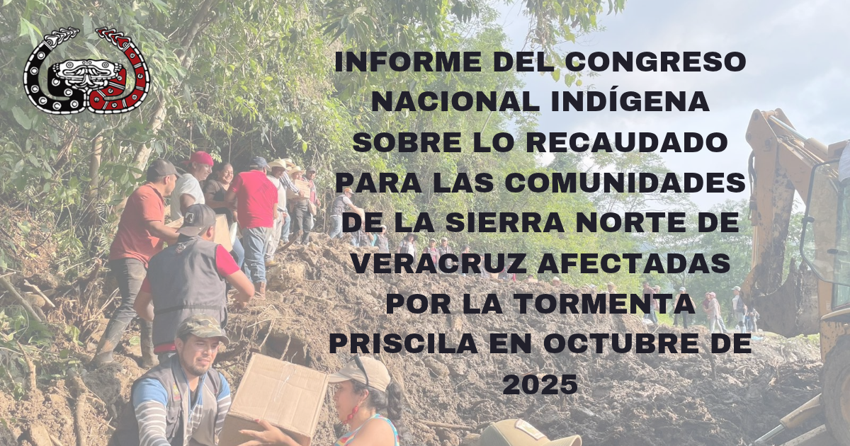 INFORME DEL CONGRESO NACIONAL INDÍGENA SOBRE LO RECAUDADO PARA LAS COMUNIDADES DE LA SIERRA NORTE DE VERACRUZ AFECTADAS POR LA TORMENTA PRISCILA EN OCTUBRE DE 2025