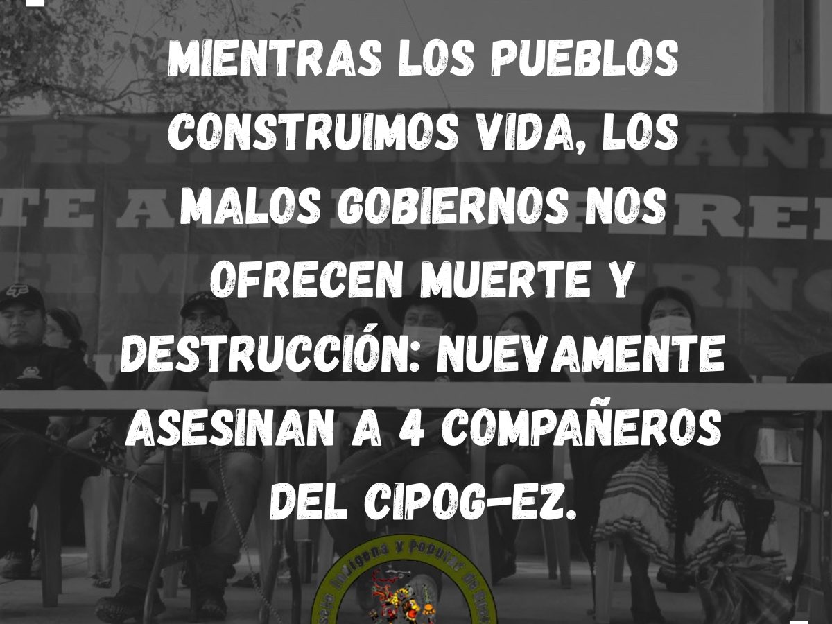 MIENTRAS LOS PUEBLOS CONSTRUIMOS VIDA, LOS MALOS GOBIERNOS NOS OFRECEN MUERTE Y DESTRUCCIÓN: NUEVAMENTE ASESINAN A 4 COMPAÑEROS DEL CIPOG-EZ.