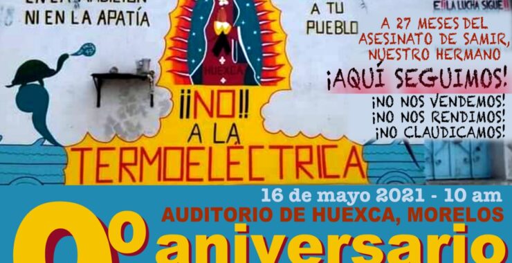 16 de mayo de 2021 Auditorio de Huexca, Morelos. 9° aniversario Misa-proyecciones-musica-arte-danza ¡¡NO A LA TERMOELÉCTRICA!! Invita: Huexca en resistencia.