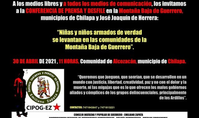 INVITACIÓN A CONFERENCIA DE PRENSA Y DESFILE EN LA MONTAÑA BAJA DE GUERRERO