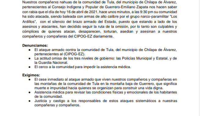 México, 21 de abril de 2021. Al Ejército Zapatista de Liberación Nacional Al Congreso Nacional Indígena Al Concejo Indígena de Gobierno A la Sexta Nacional e Internacional A la Red Nacional Contra…