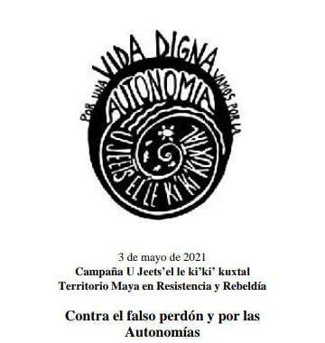 3 de mayo de 2021 Campaña U Jeets’el le ki’ki’ kuxtal Territorio Maya en Resistencia y Rebeldía Contra el falso perdón y por las Autonomías Hoy, cuando Andrés Manuel López Obrador pide…