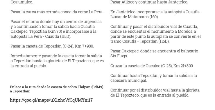 Primero.- La asamblea se realizará en la Quinta Piedra, Ejido de Tepoztlán, Morelos, ubicada de acuerdo a las instrucciones que se dan en el CROQUIS ANEXO. Se pide a los participantes…
