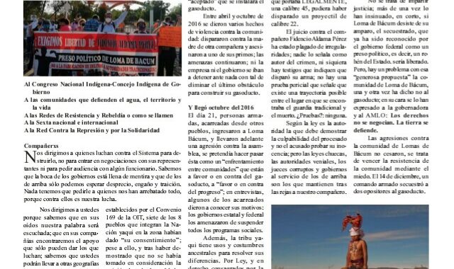Al Congreso Nacional Indígena-Concejo Indígena de Gobierno A las comunidades que defienden el agua, el territorio y la vida A las Redes de Resistencia y Rebeldía o como se llamen A la…