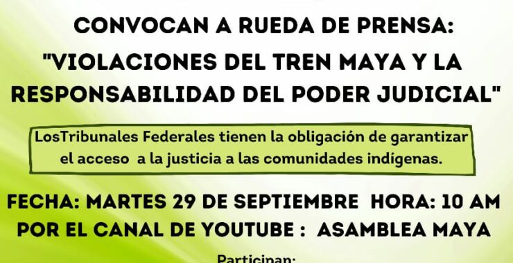 Múuch’ Xíinbal Convocan a rueda de prensa: «Violaciones del Tren Maya y la responsabilidad del poder judicial» Los tribunales federales tienen la obligación de garantizar el acceso a la justicia a las…