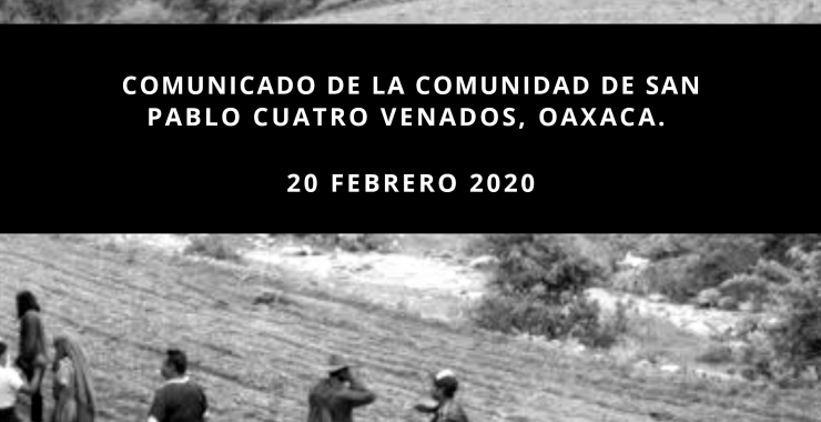20 de febrero del año 2020 Comunicado de prensa A los medios de comunicación en general A los pueblos originarios de Oaxaca y de México Al Congreso Nacional Indígena Nosotros, nosotras, comuneros…
