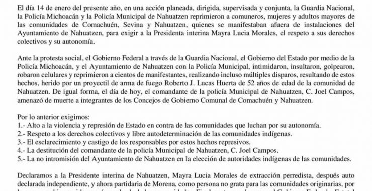 A través de un comunicado, el Consejo Supremo Indígena de Michoacán (CSIM), consejo de autoridades civiles, comunales y tradicionales que agrupa alrededor de 60 comunidades, denunció la represión de comuneros, mujeres y…