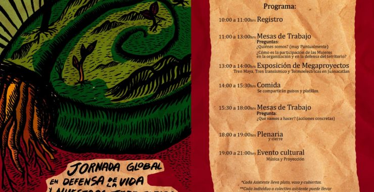 Se convoca a la Jornada global de lucha en defensa de la Vida y de Nuestros Territorios “SAMIR FLORES VIVE” en Tonalá, Jalisco. La actividad se realizará en el 12 de octubre…