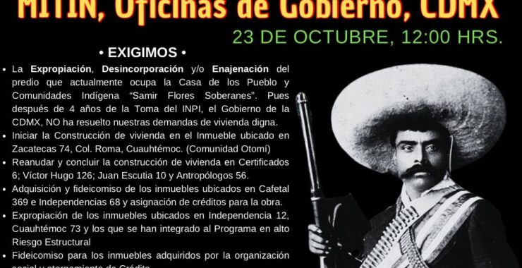 #MITINoficinasDeGobiernoCDMX Lic. Clara Marina Brugada Molina, Jefa de Gobierno de la Ciudad de México Reiteramos que para el día de mañana 23 de Octubre solicitamos audiencia con Usted, como muestra de la…