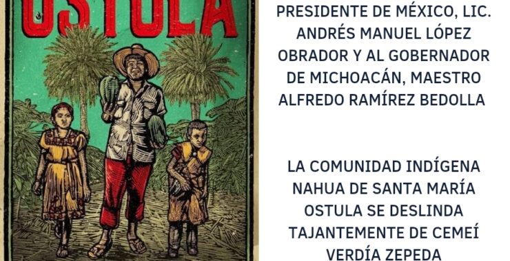 A LOS PUEBLOS DE MEXICO Y DEL MUNDO, A LOS ORGANISMOS DEFENSORES DE DERECHOS HUMANOS. La comunidad nahua de Santa María Ostula, municipio de Aquila, Michoacán, a la que pertenecemos las autoridades…