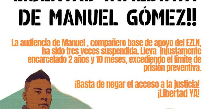 La represión del mal gobierno tiene preso injustamente desde hace 2 años y 10 meses a nuestro compañero Base de Apoyo Zapatista Manuel Gómez Vázquez. Fue detenido por autoridades oficiales y…