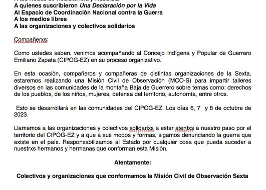 A LOS PUEBLOS DE MÉXICO Y DEL MUNDO, A LOS MEDIOS DE COMUNICACIÓN NACIONALES E INTERNACIONALES, A LOS ORGANISMOS DEFENSORES DE DERECHOS HUMANOS, A LA POBLACIÓN EN GENERAL, Este 12 de octubre…