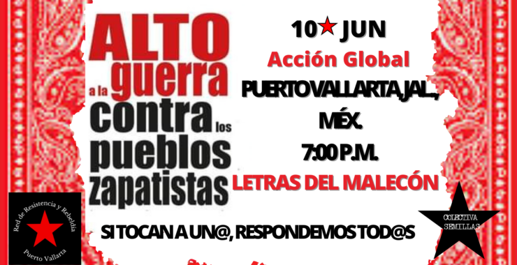 ALTO A LA GUERRA CONTRA LOS PUEBLOS ZAPATISTAS ¡Si tocan a un@ respondemos tod@s! Letras del Malecón de Puerto Vallarta, Jalisco, México. 10 de junio 2023 , 7:00 p.m. Convoca: Red de…