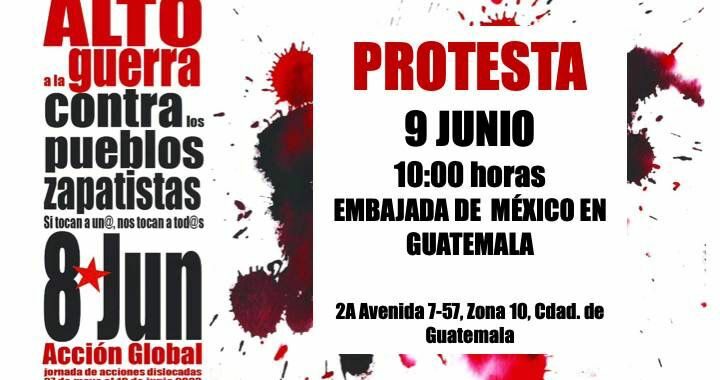 Alto a la guerra contra las comunidades zapatistas PROTESTA 9 DE JUNIO 10:00 HRS EMBAJADA DE MÉXICO EN GUATEMALA 2A Avenida 7-57, Zona 10, Ciudad de Guatemala Convoca: Red de Resistencia y…