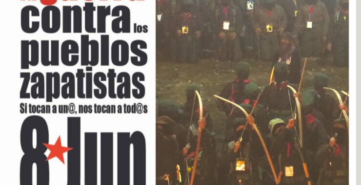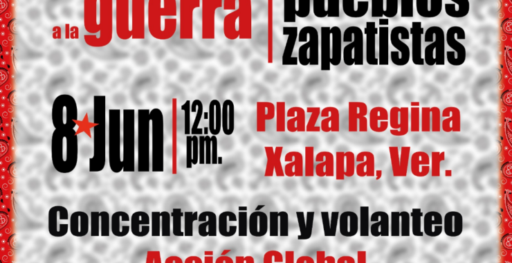 Alto a la Guerra contra los pueblos zapatistas Si tocan a un@, nos tocan a tod@s. Fecha: 8 de junio Lugar: Plaza Regina Hora: 12:00 pm.   Concentración y volanteo informativo Convocan:…