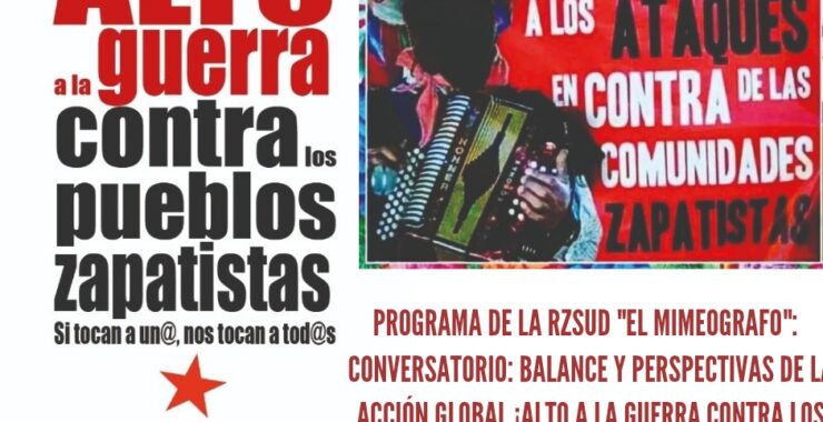 Sábado 10 de Junio: Programa de la RZSud «El Mimeografo»: Conversatorio: Balance y perspectivas de la acción global ¡Alto a la Guerra contra los pueblos zapatistas!! 12:00 hrs, La Paz, Baja California…