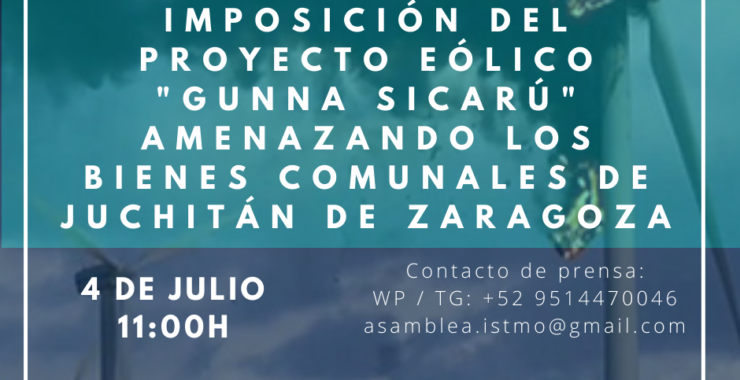 Hacemos la atenta invitación a los medios de comunicación a participar en la Conferencia de Prensa que se realizará con motivo de informar sobre la imposición del Proyecto Eólico «Gunna Sicarú» de…
