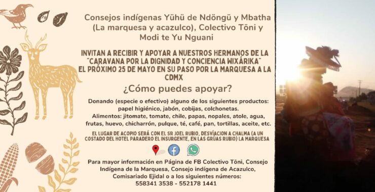 Consejos indígenas Yühú de Ndöngü y Mbatha (La marquesa y acazulco), Colectivo Tõni Modi te Yu Nguani INVITAN A RECIBIR Y APOYAR A NUESTROS HERMANOS DE LA «CARAVANA POR LA DIGNIDAD Y…