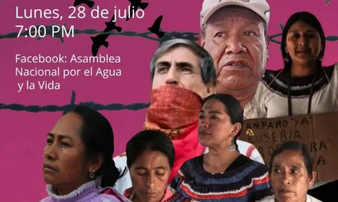 FORO VIRTUAL LA CRIMINALIZACIÓN DE LAS Y LOS DEFENSORES DEL TERRITORIO: Mecanismos de control, represión y despojo contra los pueblos originarios Transmisión en Facebook: Asamblea Nacional por el Agua y la Vida…