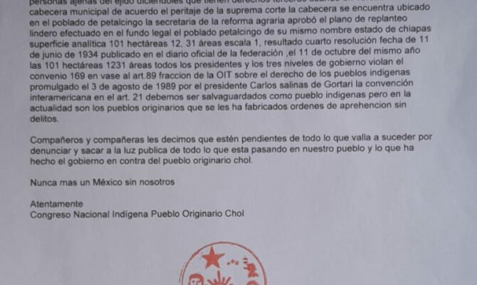 Ejido tila chiapas mexico a 23 de julio del 2025 A los medio de comunicación nacional e internacional no gubernamental A las organizaciones de mexico y el mundo A los derechos humanos…