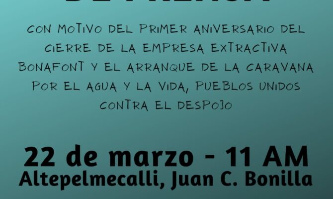 Conferencia de prensa por el primer aniversario del cierre de la empresa Bonafont-danone y el arranque de la Caravana por el Agua y la Vida