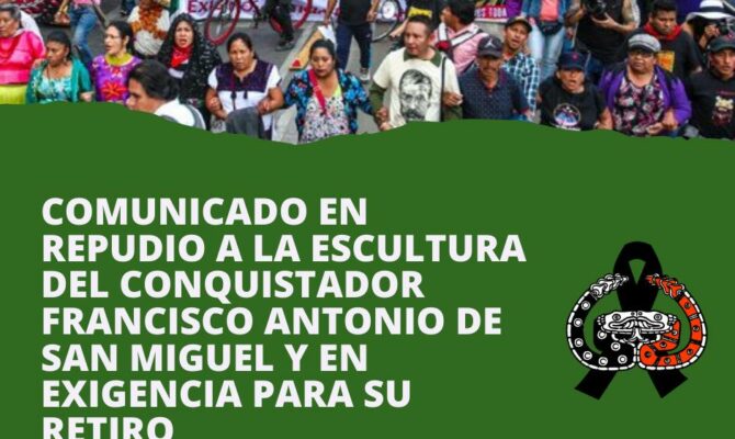 Comunicado en repudio a la escultura del conquistador Francisco Antonio de San Miguel y en exigencia para su retiro.