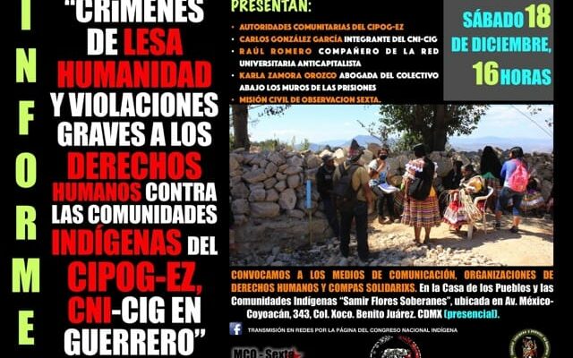 INVITACIÓN AL INFORME-CONFERENCIA DE PRENSA “CRÍMENES DE LESA HUMANIDAD Y VIOLACIONES GRAVES A LOS DERECHOS HUMANOS CONTRA LAS COMUNIDADES INDÍGENAS DEL CIPOG-EZ, CNI-CIG EN GUERRERO”