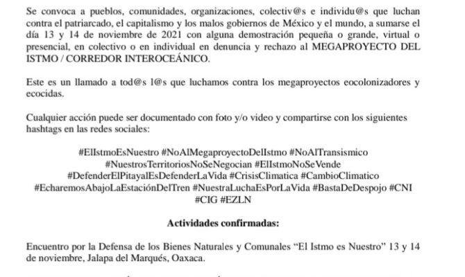 CONVOCATORIA INTERNACIONAL PARA LA ACCION GLOBAL CONTRA EL CORREDOR INTEROCEANICO Y LOS MEGAPROYECTOS DE MUERTE “EL ISTMO ES NUESTRO”