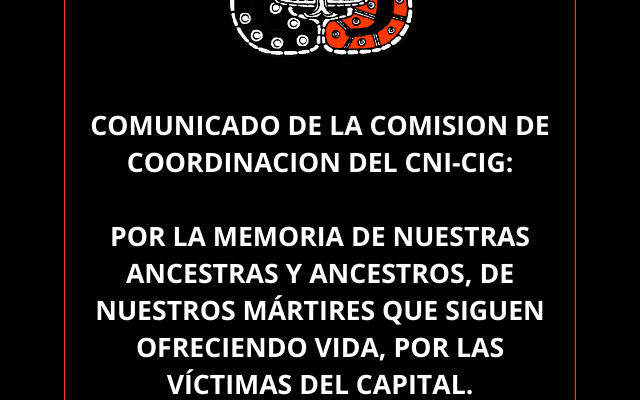 Por la memoria de nuestras ancestras y ancestros, de nuestros mártires que siguen ofreciendo vida, por las víctimas del capital.